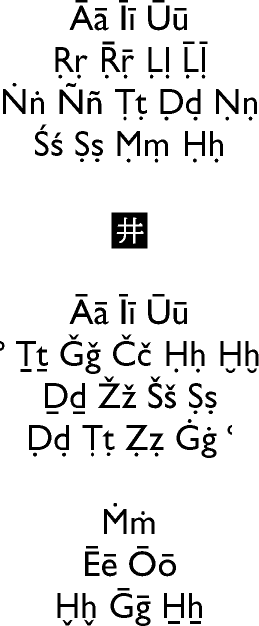 GraecoLatin | GreekCaps | Mosaica | Osmanli | Arabica | Sasana | Nagari | Shittan | Pinyin | I-ching | T'ai-hsüan | Serica